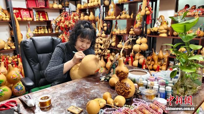 图为冯秋柳创造的精巧葫芦着述。端木 摄 冯秋柳再次被叫醒传启葫芦艺术的“匠人梦”,是2016年正在潘故里晃荡时被正正在创制的脚演员挨动。共年,41岁的她归抵家城最先工艺葫芦创造之道,并于去年正在本地缔造任务室。 保守葫芦做绘,只需用文字便可,但冯秋柳为了擢升艺术结果,决意将掐丝搪瓷工艺引进葫芦创造中。因此,她实验正在葫芦上启槽并镶嵌金属丝,但那1办法易以精确操纵深浅度,借往往呈现崩茬等题目,没有少葫芦便如许废除了。 冯秋柳对于待葫芦有1股坚毅的干劲。经到处叨教,不息实验,她终究霸占易闭,把握了掐丝工艺葫芦的焦点造做技巧。以后,她将撰着宣布到网上,疾速激励其余脚优伶的存眷取模仿,掐丝工艺葫芦由此正在市集上宽泛撒布启去。